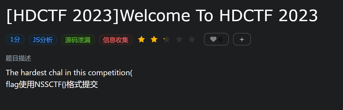 HDCTF 2023Welcome To HDCTF 2023 2025-3-11 21:49 | CTF,CTF-web,NSSCTF | 162 85 字 | 1 分钟内 本文最后更新于276 天前,其中的信息可能已经过时,如有错误请发送邮件到big_fw@foxmail.com 方法一 找炸弹死掉,自动给flag 方法二 1.信息收集 F12发现一个game.js 2.访问game.js文件 发现jsfuck编码 3.进行jsfuck编码解密 粘贴到控制台解密 成功获得flag 总结 js分析 jsfuck解密 文末附加内容 JS分析信息收集